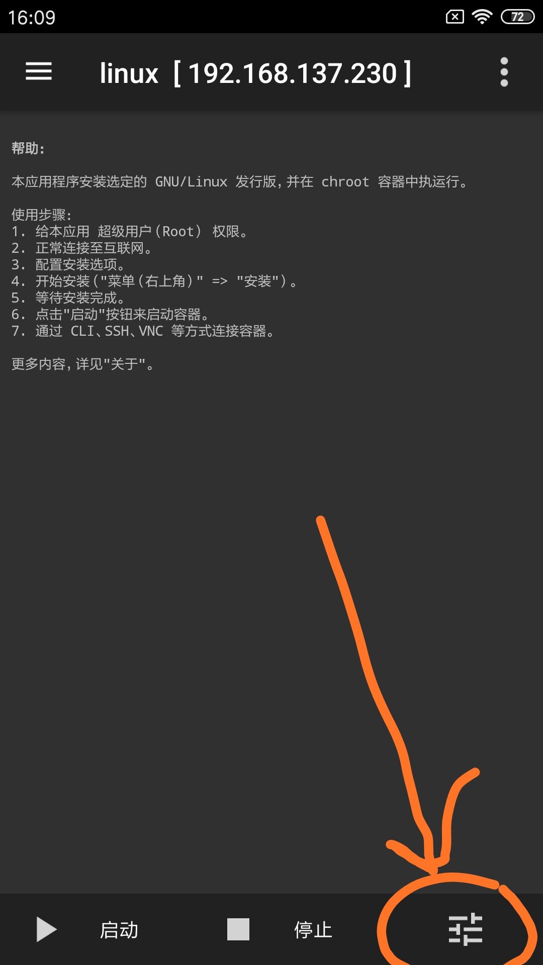 在Linux Deploy中点击启动。