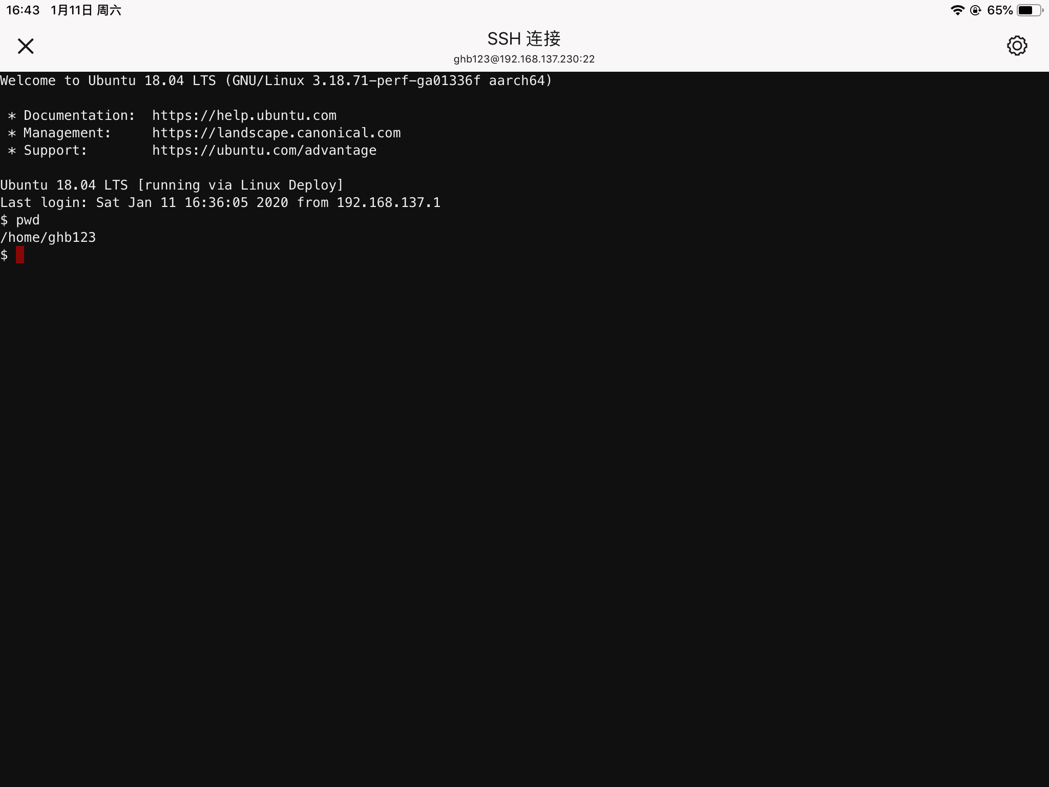这时候我们可以使用JuiceSSH来连接刚刚配置的Linux,也可以使用同一局域网内的任何设备进行连接。