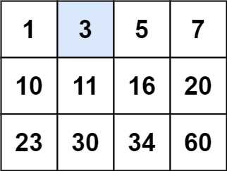 输入:matrix = [[1,3,5,7],[10,11,16,20],[23,30,34,60]], target = 3